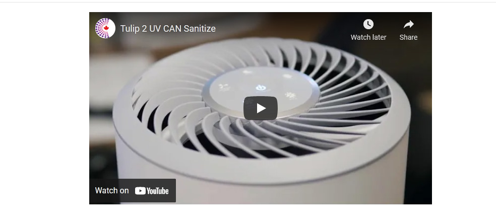• Tulip 2 is a tabletop, portable air purifier with a triple air filter (containing a pre-filter, HEPA filter, and activated carbon filter), and germicidal UV-C light option