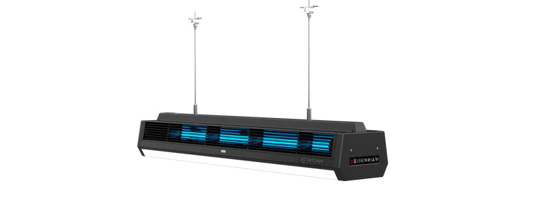 • Lupin uses UV-C to shine horizontally across the upper room of your indoor space (above 2.3m), disinfecting bacteria and viruses in the air