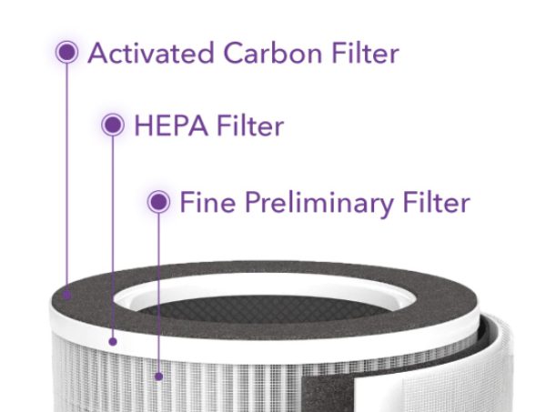 - Triple air filter: Indoor air passes through pre-filter, HEPA H13 filter, and activated carbon filter
